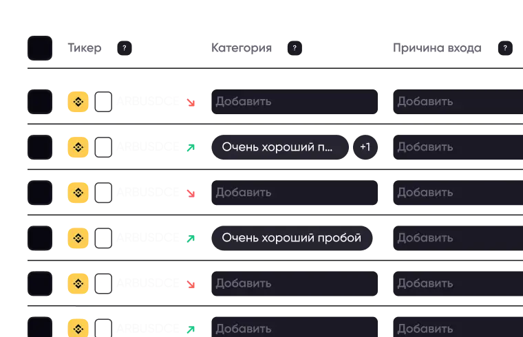 • Добавлять заметки, фиксируя идеи, сетапы или ошибки